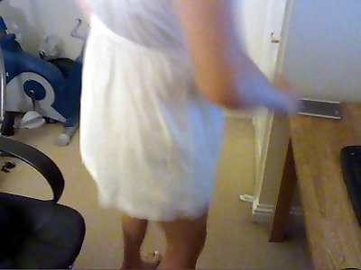 Slender dark hair shemale unclothes off girly sundress and shoots a load rock hard
