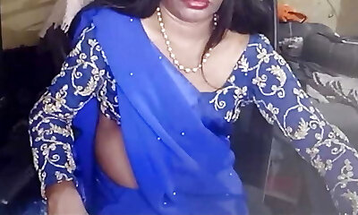 Indian trans woman Gaurisissy pressing and draining her knockers in pink saree