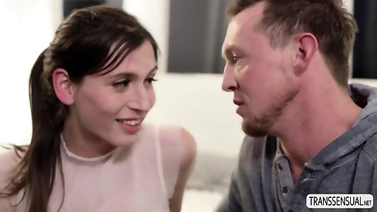 соблазнительная брюнетка с маленькой грудью предается чувственному сексу со своим стройным другом-трансвеститом