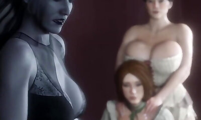 два транса с большими сиськами дважды проникают в одну грудастую милфу в 3d анимации