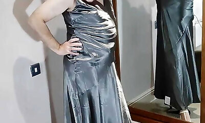 британская телезвезда в длинном атласном бальном платье, очень сексуальном и эротичном