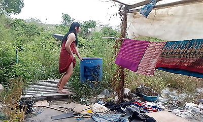 симпатичный азиатский ледибой мастурбирует на открытом воздухе